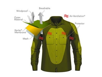 | John Doe Lumberjack Kevlar Shirt , het gehele shirt is voorzien van 100% KEVLAR (Made inGermany), door het hele shirt. Afsluitbare zakken aan de binnen kant van het shirt. Kan worden voorzien van protectie op de schouders, ellebogen en rug. Deze bescherming moet apart besteld worden. | |
